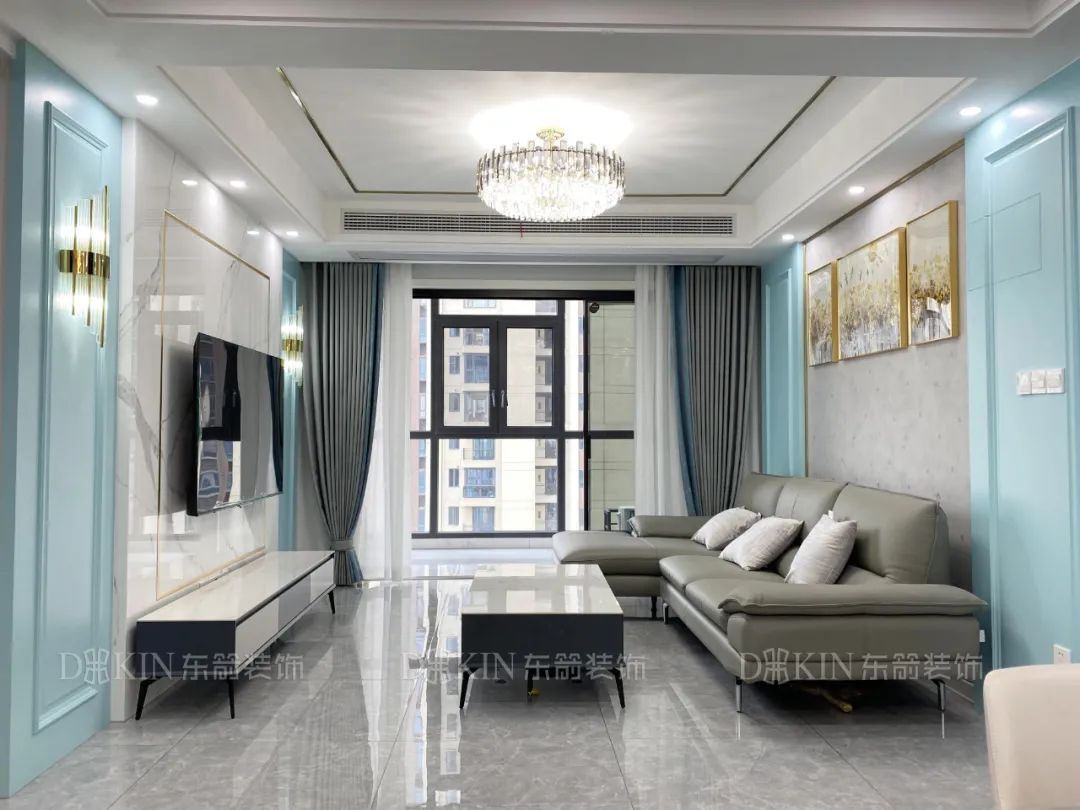 本案例位于城市之光,面积120m²,结合户型分析及业主需求,设计师将家居空间风格定位于现代轻奢,在空间功能布局合理,风格统一,使家里有更优的采光与通风,布局和调性得以释放与升华。