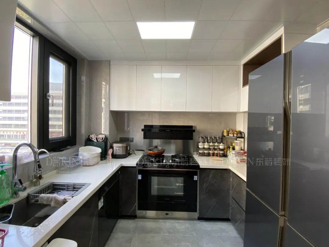 厨房连接餐厅,朋友来时,大家一起在这里做一做饭,喝喝酒。闲暇时做个简餐为生活增添些许惬意,宁静中求得舒适。