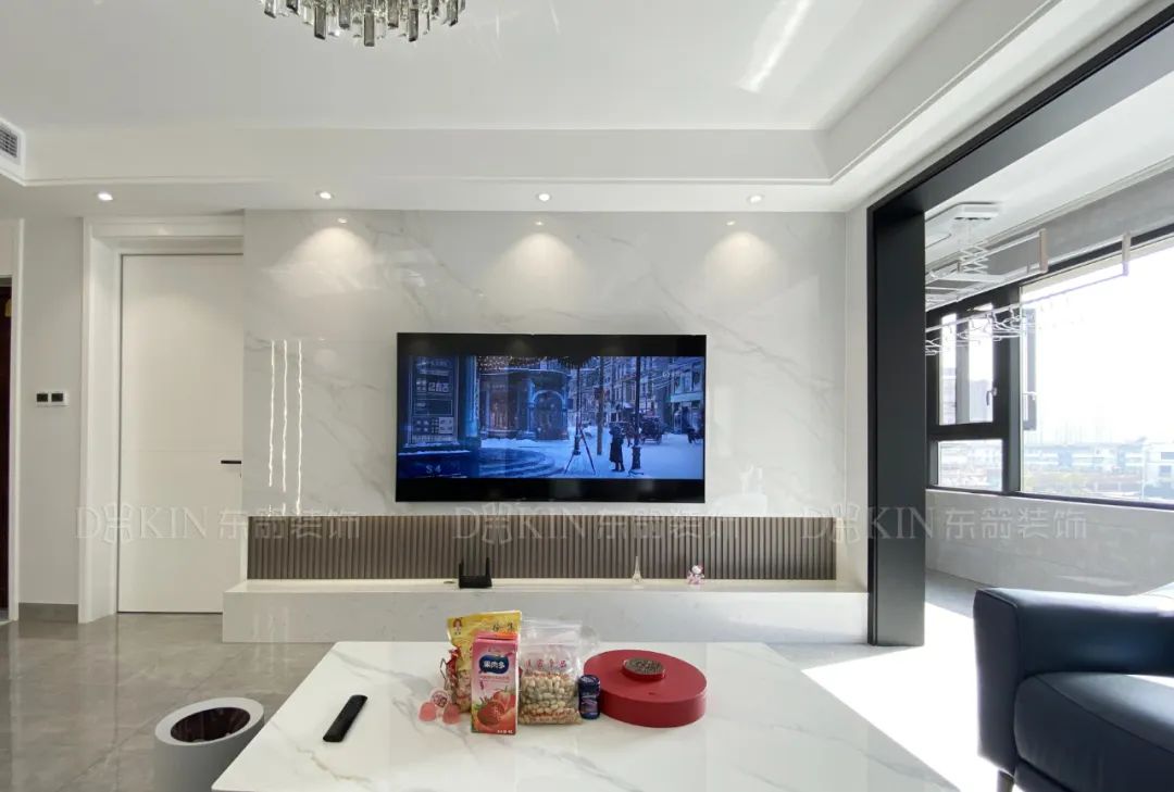 客厅一侧打造了玻璃酒柜,既显得美观又能凸显出客厅大气简约。黑色与白色的搭配呈现出大气而又不失沉稳。