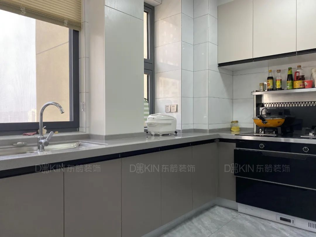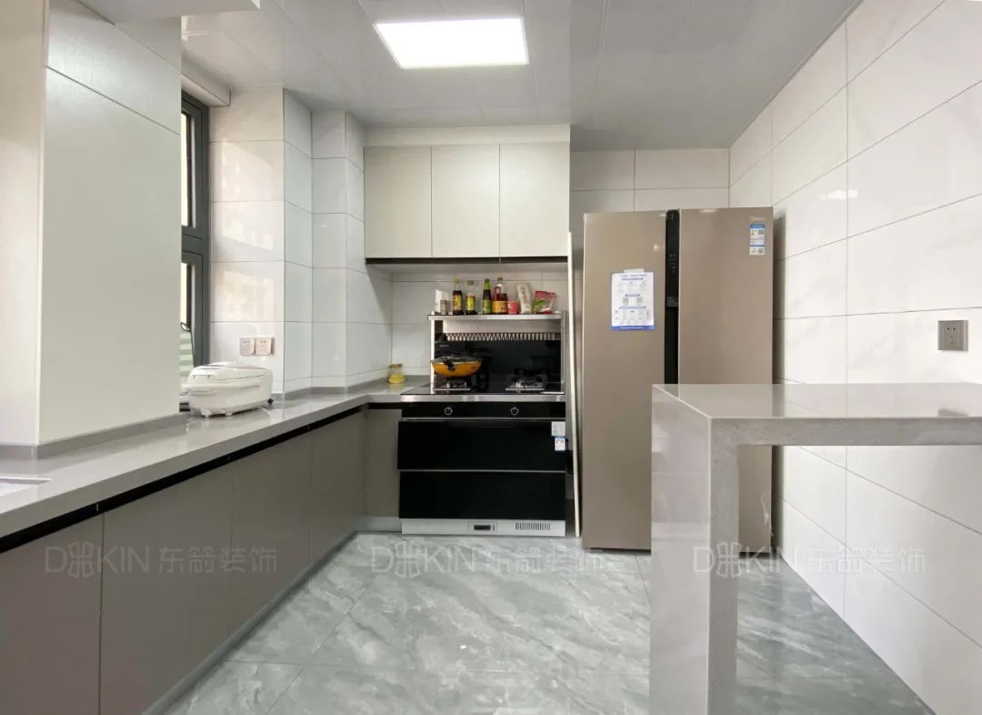 1.厨房空间在原有基础上扩大,多做出了一个西厨台面更显档次。