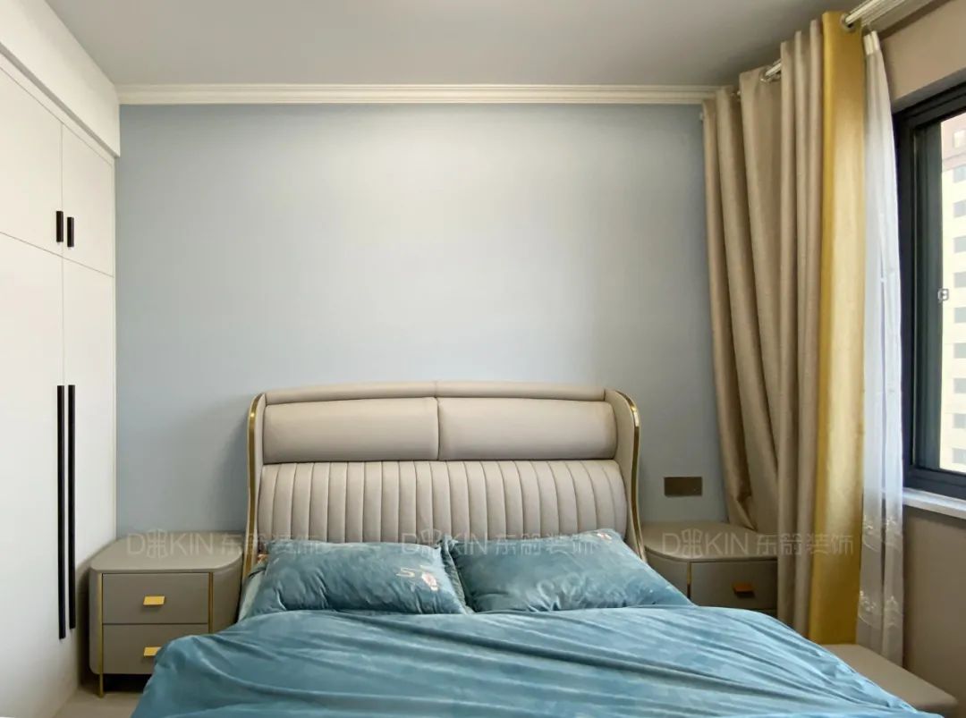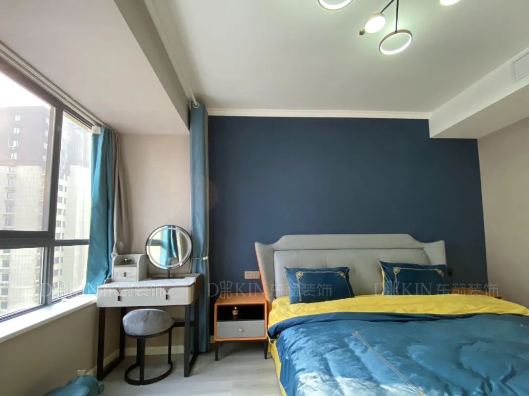 3.主卧定制衣柜和梳妆台体现居家实用感和烘托整体空间层次感。